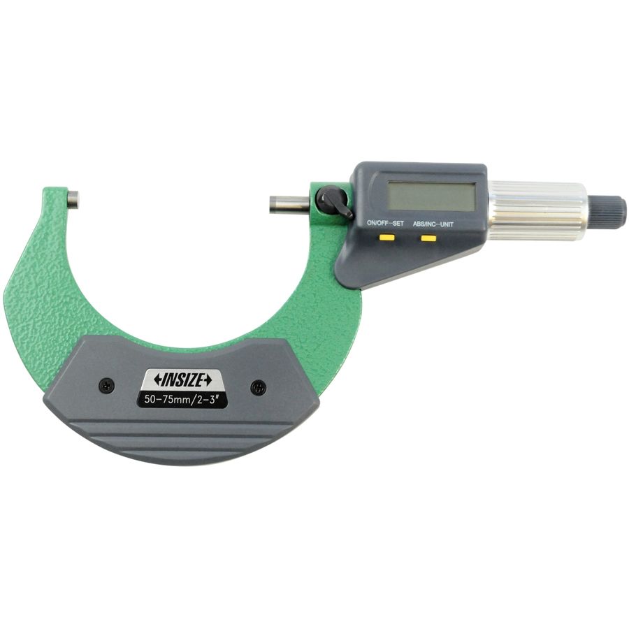 Электронный гладкий микрометр для наружных измерений. Диапазон измерений 50-75 мм. Цена деления 0,001 мм, 0,00005ʺ. Переключение с мм на дюймы, с абсолютных измерений на относительные (ABS/0).