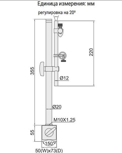 Штатив магнитный для индикаторов часового типа, цифровых и рычажно-зубчатых. Усилие отрыва магнита 100 кгс.
