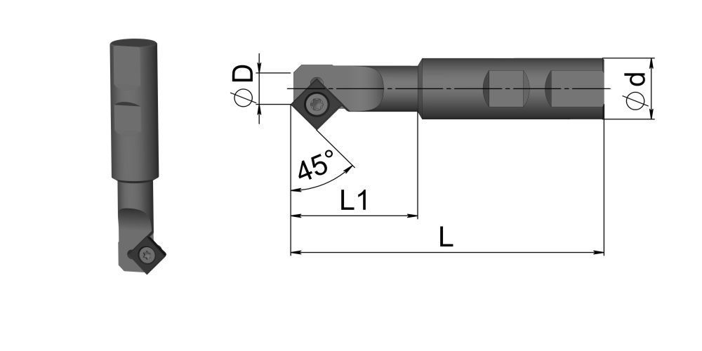 Фреза фасочная с главным углом 45° типа AC01. Рабочий диаметр D 32 мм, диаметр хвостовика Weldon d 32 мм. Количество зубьев: 3.