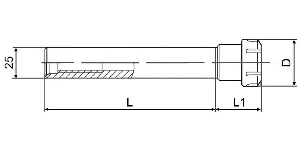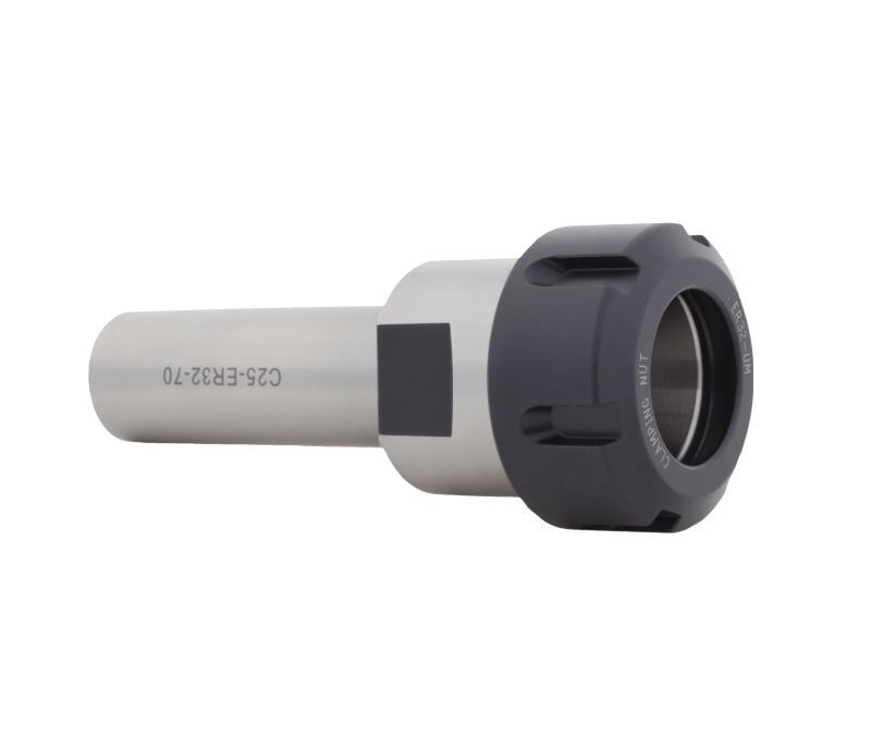 Фрезерный патрон C25-ER32-070 (DIN 6535 HA / ISO 3338) используется в условиях большого вылета инструмента или ограниченного доступа к зоне резания. Цилиндрический хвостовик оправки фиксируется в цанговом зажиме большего размера или патроне Weldon (при наличии специальной лыски на хвостовике). Установка режущего инструмента в корпус патрона осуществляется при помощи зажимной цанги ER32 (DIN 6499) и гайки типа UM. В зависимости от размера отверстия цанги в патрон устанавливается инструмент с цилиндрическим хвостовиком диаметром от 2 до 20 мм. Длина хвостовика патрона составляет 70 мм.