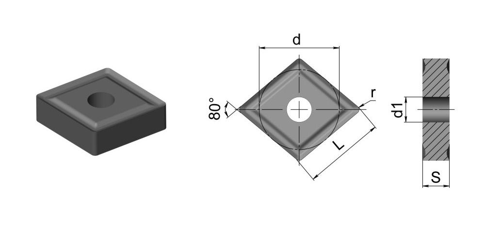 Твердосплавная пластина сменная CNMG производства HUAREAL. Форма пластины : C (ромб 80°). Задний угол 0°. Универсальный стружколом. Покрытие: HR6115. Радиус при вершине 1,6 мм. Область применения: получистовая обработка чугуна.