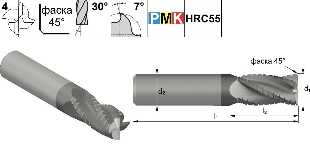 Читать все статьиPMK11.z4.12.45.100.30.F024 TiAIN Фреза концевая твердосплавная по металлу