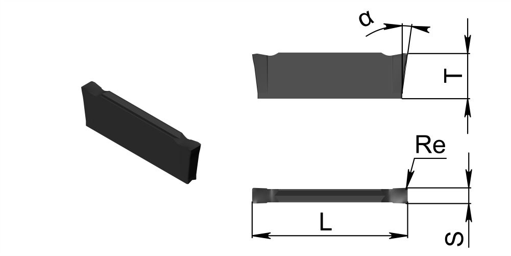 Пластина отрезная твердосплавная сменная. Универсальный стружколом, двухсторонний. Покрытие: HR52527. Область применения: нержавеющая сталь, отрезка и обработка канавок.