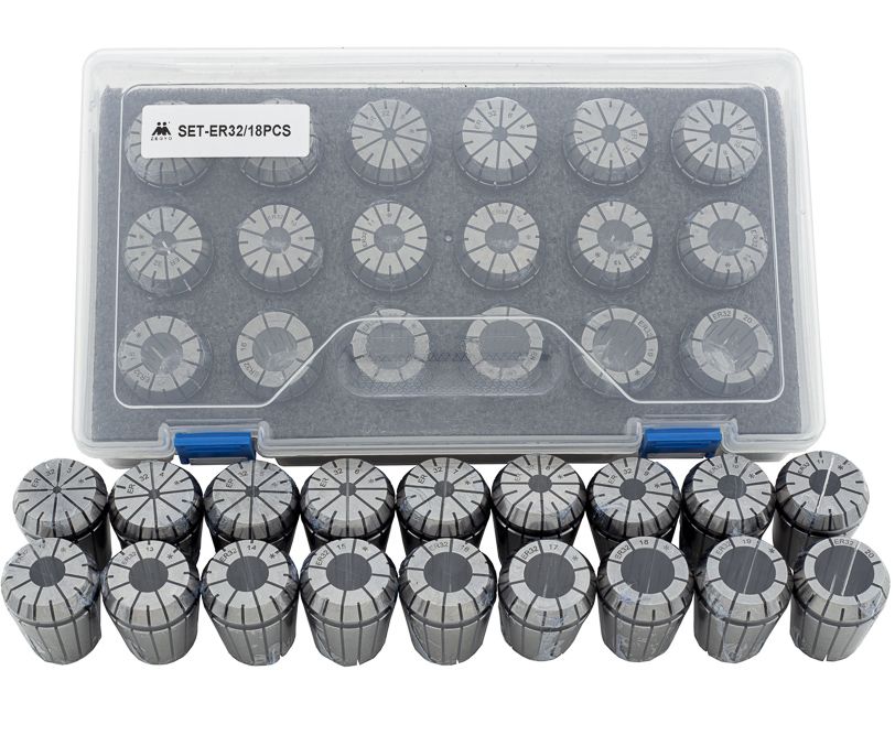 ER32-SET-18 - набор, состоящий из 18 цанг ER32, предназначенных для фиксации инструмента с цилиндрическим хвостовиком различного диаметра (от 3 до 20 мм).