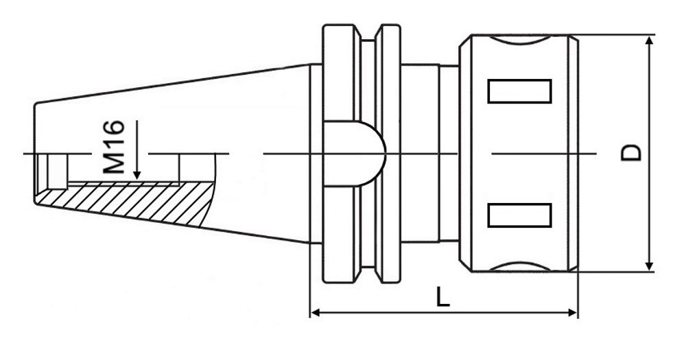 Фрезерный патрон BT40-OZ32-100 (MAS 403, JIS B 6339) обеспечивает надежную фиксацию режущего инструмента с цлинидрическим хвостовиком в шпинделе станка и используется во фрезерных станках с ЧПУ, обрабатывающих центрах. Фиксация инструмента в корпусе патрона осуществляется при помощи усиленной цанги и гайки EOC32/OZ32 (DIN 6499B). В зависимости от размера отверстстия цанги в патрон устанавливается инструмент с хвостовиком диаметром от 4 до 32 мм. Крепление оправки в шпинделе производится при помощи штревельного болта M16, который не входит в комплект поставки и приобретается дополнительно. Тип подачи СОЖ: АD (через центральное отверстие). Вылет патрона от шпинделя станка составляет 100 мм.